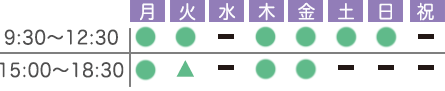 診療時間の変更のお知らせです。午前の診療は、12時30分まで、午後は、火曜日は19時まで、月曜日、木曜日、金曜日は、18時30分までとします。よろしくお願いします。